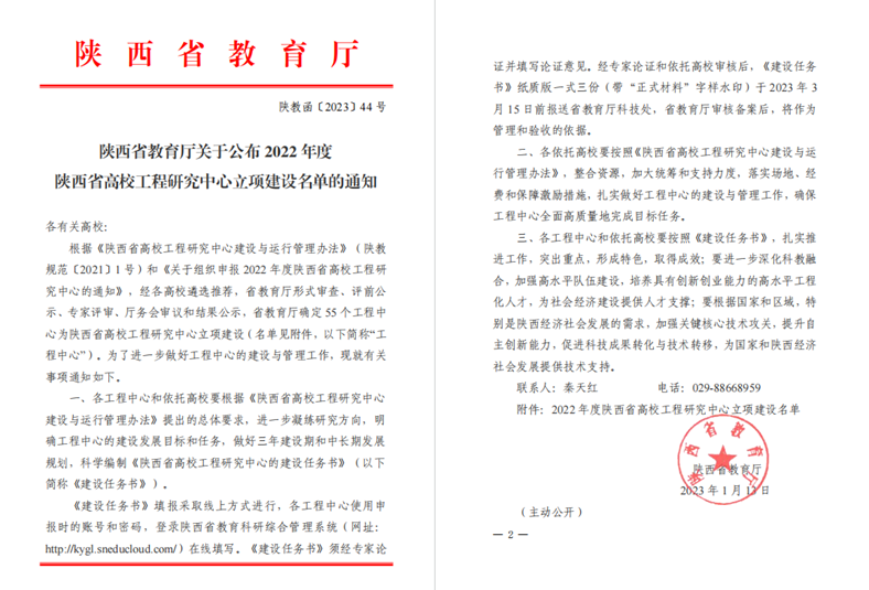 近日,陕西省教育厅发布了《陕西省教育厅关于公布2022年度陕西省高校工程研究中心立项建设名单的通知》。申慱官网由张乐芳副校长牵头的“城市智慧建造陕西省高校工程研究中心”获批2022年度陕西省高校工程研究中心。这是申慱官网首个省高校工程研究中心。