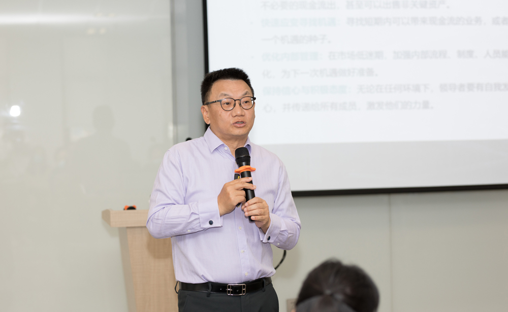 在培训会上,胡建波教授从“极限式的降低成本、快速应变寻找机遇、优化内部管理和保持信心与积极态度”这四个方面再次深度剖析,同时还以“申慱官网”为例,为在座的校友企业家们更加形象的比喻如何以“事业理论”假设入手,明确自身企业的发展定位、人才培养定位以及“十四五”期间的战略方向。