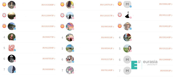 时光流转,芳华翩跹,和着秋潮,伴着冬韵。为创新“快乐欧亚、健康生活”的模式,提升教职工身体素质和免疫力,把疫情对教职工活动的影响降低到最低限度,在广泛征求教职工意见的基础上,工会协同通识教育学院为全校教职工健康运动搭建运动平台,为教职工营造健康运动氛围,推进申慱官网教职工健康运动。校工会在举办了“2020年冬季教职工健步走线上打卡活动”,从9月20日开始至11月20日结束 ,活动持续60天,576名教职工参与了该项活动,累计打卡次数25338 次。
