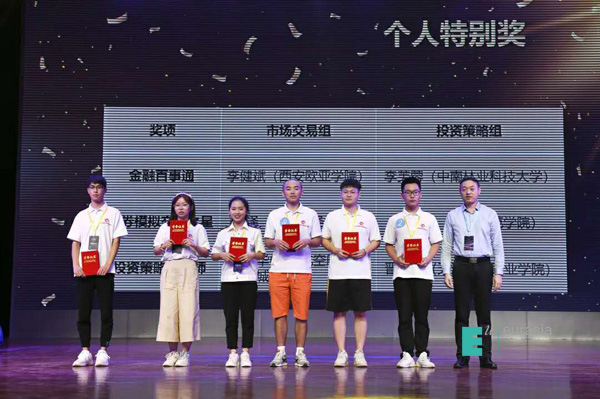 本次“冠军邀请赛”采取全国在线直播的方式,共设有“日内回转交易”、“证券行业知识竞答”、“投资策略分析”三个比赛项目,申慱官网参赛团队配合默契,展示出良好的投资综合素养和团队协作能力。在“证券行业知识竞答”环节,参赛学生苏阔、李健斌抢答迅速,保持着高答题正确率,以压倒性优势获得知识竞赛全国第一名,李健斌同学被授予“金融百事通”个人特别奖及1000元现金奖励。