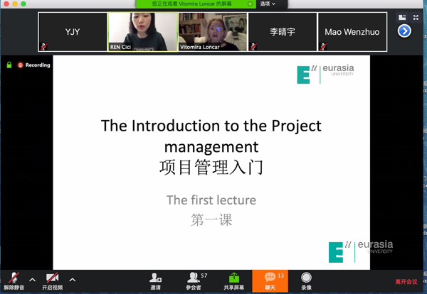 因为疫情影响,Vita教授暂时无法回到中国,只能采取跨国连线的方式,和同学们在云端见面,尽管作为一位有着丰富在线教学经验的教师,Vita教授持有“网络教学导师”专业资质,但为了这次跨国课程,她依然和授课团队多次沟通讨论,针对性地为课程设计了丰富多样的形式,课程采取中外双教师共同授课的方式,教师学生双向视频直播,增加了在线课程的仪式感和互动感,讨论形式丰富多样,学生积极性很高。当讲到情感色彩时,Vita教授就会让大家用一些词形容国内人们的情绪,还会和同学们分享关于克罗地亚的趣事。