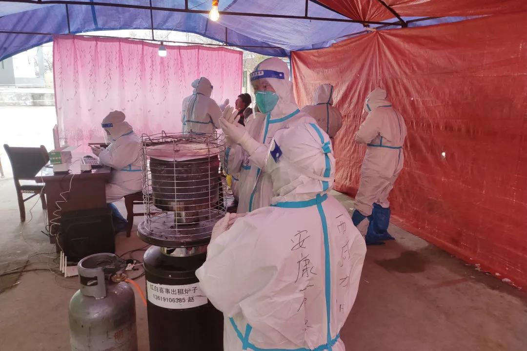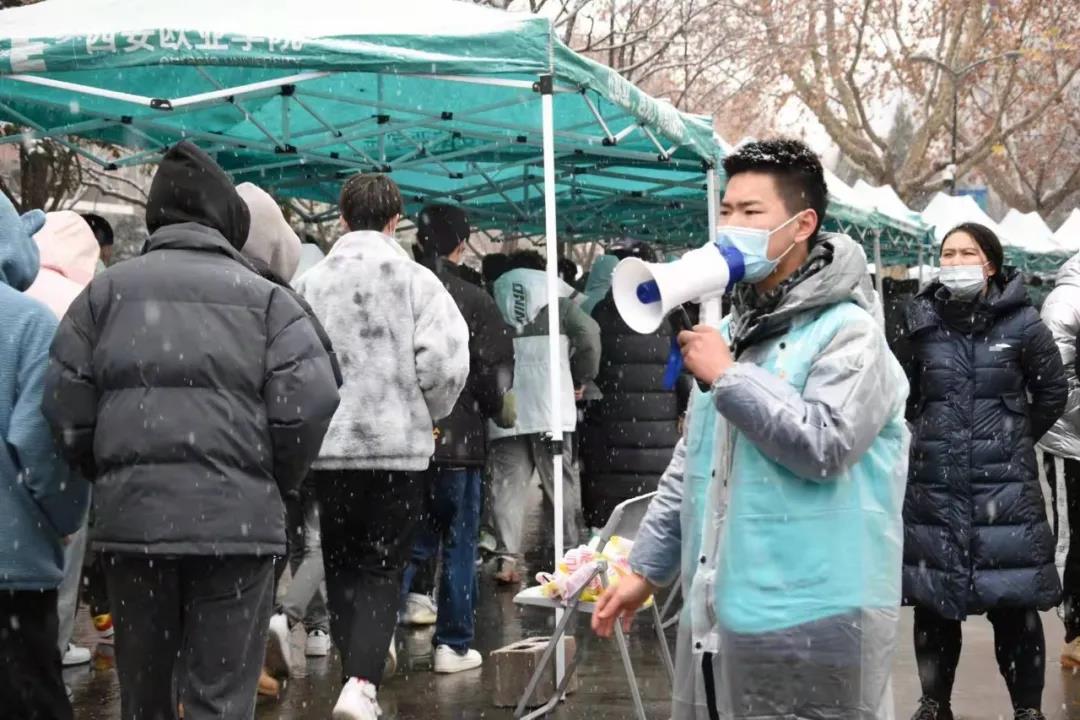 家在秦汉新城的学生创毅,在社区宣布封闭管理的当天就报名了志愿者招募。在服务社区核酸检测时,创毅从早上七点半开始工作到晚上十一点,常常一天工作完,冻得脚都没了知觉。“防护服是一次性的,不能随便脱,我们都尽量不上厕所,每天基本固定上两次,”创毅说道,“我是一名党员,哪怕再辛苦,我一定尽职尽责,坚守在岗位上。”
