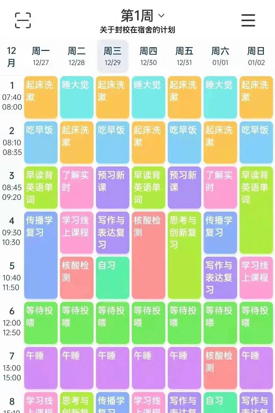 ▲欧亚学生们的“宅”寝自律计划