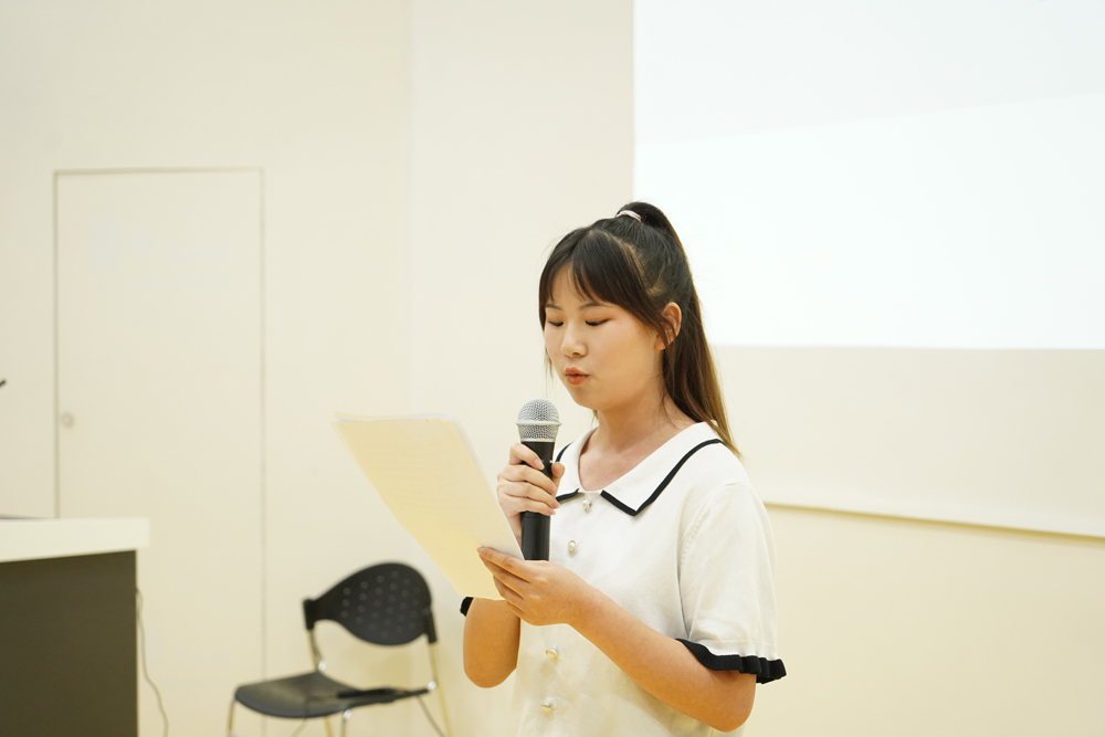 Xdea青年社区张腾同学代表第一届导生做工作报告,他将导生一年的工作内容做了详细的汇报,并将导生团队在朋辈育人方面的成效一一做了展示。他提到:朋辈支持、服务新生是导生工作的着力点,而导生自身的成长与发展则是导生工作的落脚点,如何帮助新生在入校后快速适应大学生活,获得进步与成长,一直是他们为之努力的方向。他希望每一位即将加入的新伙伴,在工作中不仅能为新生提供咨询、服务和帮扶,同时也能在工作中与团队一起成长,互助育人。