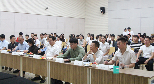 议程第二项,由规划发展处副处长、Eu-Start校园孵化器负责人王一冰老师介绍了Eu-Start校园孵化器的愿景、使命、价值观等信息,并分享了近期的创新创业活动与所取得的成果。王老师的精彩分享,立刻就引起的欧亚创业学生的热烈反响,点燃了同学们的热情。