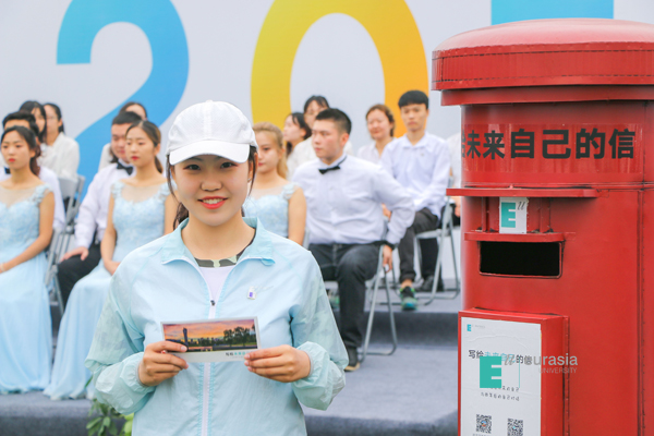 一枚小小的校徽,是一份荣耀,更是一份承诺。接下来,全场同学们共同佩戴校徽,同时由校长刘瑾教授和学长、学姐代表,分别为新生代表们佩戴校徽,从这一刻起,同学们即将开启完美的大学生活体验!随后,新生代表们向“未来邮筒”中投递出对自己大学四年后的期望,寄存了一份青春,一份记忆。