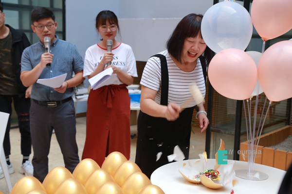 作为被选中的幸运儿,才艺展示完毕当然少不了“砸金蛋,抽大奖”环节,会务人员为我们提前精心准备好了礼品,每一位表演过的老师都能进行砸金蛋抽奖,有幸运的老师直接砸蛋获奖,也有更幸运的老师砸到了“黄金空蛋”,但无论是否获奖,老师们都欢喜,最重要的是为大家带来了欢乐,每一位老师都满足,开心——这就是作为光荣老师的无私奉献精神。