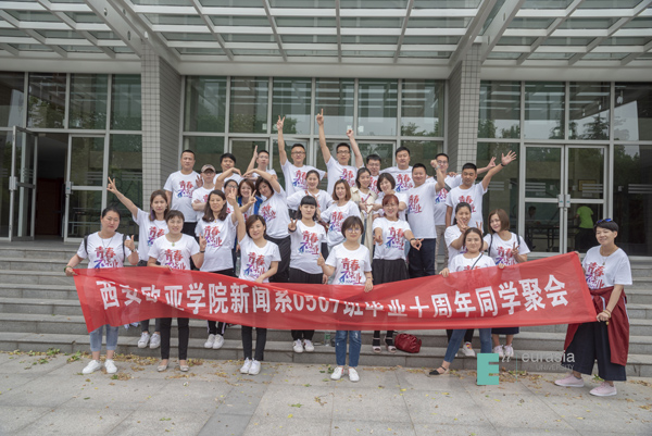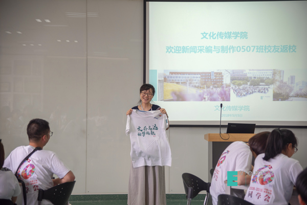 2018年5月5日上午,申慱官网文化传媒学院新闻与采编制作0507班毕业10周年“青春不散场”聚会在402室举行。校友们心怀对母校的感激之情重返校园,共话当年青葱岁月。