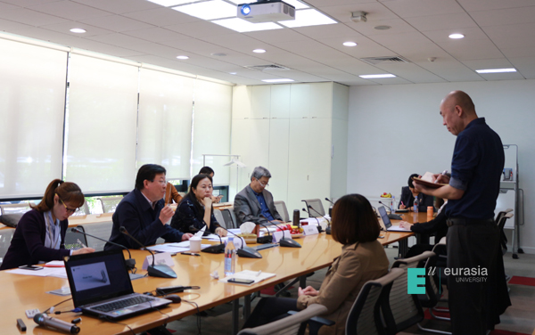 最后,刘瑾校长及曹明明老师在对两位外部专家的鼎力支持表示衷心感谢,并进一步指出,本次校级科研团队汇报会议的召开,既是对11个校级科研团队开启新一年科研工作的指导,也是一次非常难得的科研团队之间的学习和交流。各科研团队在现阶段,发展方向更明确、工作任务更具体、奋斗目标及考核指标更清晰。虽然欧亚学院的老师们在科研领域单兵作战还显力量薄弱,但以科研团队的形式,凝聚团队力量形成合力,在一个共同研究领域内凝练特色,必将形成一定影响力。