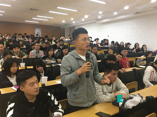 在提问环节,两位大咖回答了同学们在创业上的问题,帮助同学们分析了关注的市场行情,为同学们解开了困惑。面对学生创业还有没有机会这一问题,两位老师给出的答案是:创业永远是一种精神状态,只有不断寻找机会,才有可能胜出。
