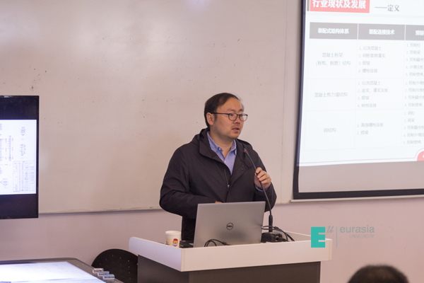 北京榆构集团构件厂厂长李晓文从装配式行业国内外大环境、国家政策支持、装配式面临的发展问题等解读了装配式行业现状和人才需求。辽宁城市建设职业技术学院装配式专业教研室主任王鑫作装配式高校专业方向建设成果及经验专题报告。王鑫用生动幽默的语言,向大家讲述了该校装配式专业创建、发展历程,也分享了遇到的诸如师资力量薄弱、技术向理论转化困难、教学资源匮乏等困难,并结合实际提出了装配式专业建设方向、人才培养的中肯建议。