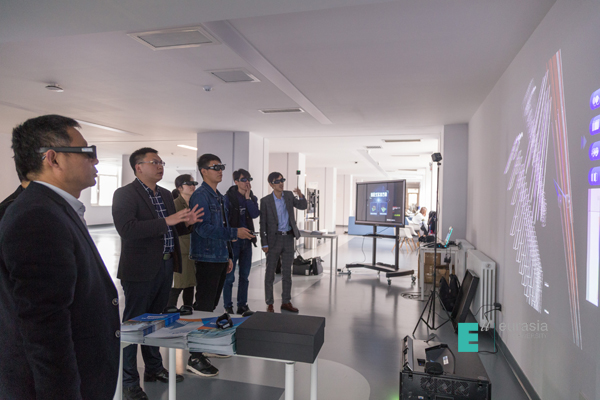 智能建造专业负责人杨光、教师徐缤荣,绿建中心负责人杨帆带领与会者参观了人居环境学院教学楼。参观者与三位老师就办学理念、专业建设、人才培养等交流探讨,还观看了各工作室学生项目成果、实训作品。大家一致称赞:欧亚学院为师生提供了健康舒适、具有国际范和幸福感的教学空间,为绿色校园、智慧校园建设提供了新范式。参会者还在广联达教育研究中心高级产品经理高华锋的带领下共同体验了广联达公司装配式认知教学、知识教学展示区和实操区。