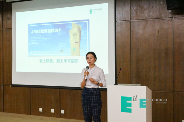 本次活动还邀请到了14级国际班的李怡帆同学,她目前属于放假期间,特地前来欧亚和同学们分享自己在英国这一年的学习和生活经验,希望对同学们有一定的帮助。首先来到异国他乡一定会有不习惯的地方,但是好在卡迪夫的国际办公室老师们都非常的热情,很乐意去帮助大家解决各种各样的问题。同时学校的师资条件和硬件设施都是非常出色的,为国际学生提供了更好的学习条件。并且国外的上课模式非常丰富,经常组织学生开展课外活动从而锻炼团队合作能力。除此之外,英国的交通也是非常便利,在课余时间可以去其他城市游玩也是非常方便的。需要强调的一点是英国的食物可能有些不尽人意,所以在国内的这几年大家一定要提升自己的厨艺,出国后自己下厨还是比较实惠并且比较满足自己的口味。在最后,李怡帆学姐非常感谢欧亚提供了这样一个机会,让她能有一个出国留学的机会,并且在这四年来,自己也是收获颇多,已经有了和同龄人不一样的见识。同时她希望有更多的同学加入国际班这个大家庭,感受国际化,让自己的生活有着更多的机遇和不一样的发展。
