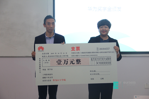 随后孙树林老师代表华为ICT学院进行奖学金的发放,由信息工程学院副院长刘丽丽女士代表信息工程学院接收。