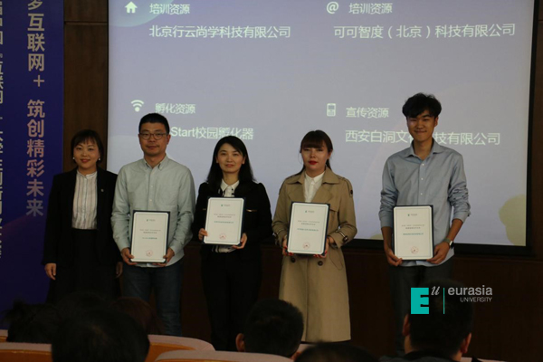 学校今年签约了全程助赛资源,分别是可可智度(北京)科技有限公司和北京行云尚学科技有限公司的培训资源、校园Eu-Strat孵化资源以及西安白洞文化科技有限公司的宣传资源,并于启动会上进行了资源发布仪式,这些助赛资源将全程参与并贯穿于院赛、校赛、省赛、国赛,提供完善的备赛支持。