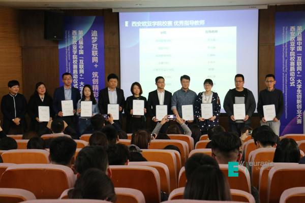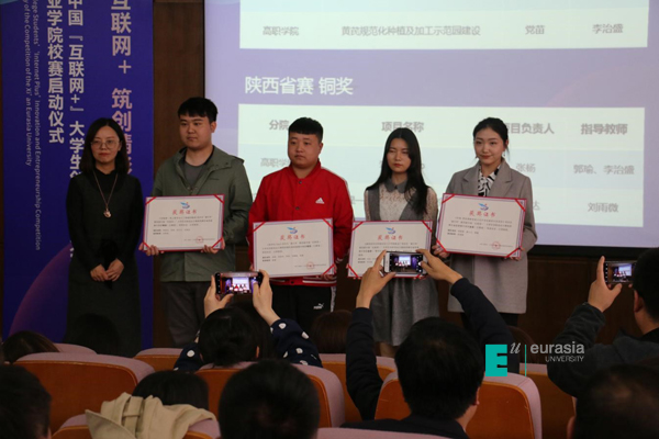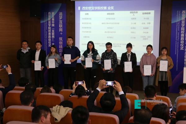会上对2018年第四届“互联网+”大学生创新创业大赛校赛金奖、省赛获奖和优秀指导老师进行了颁奖表彰。