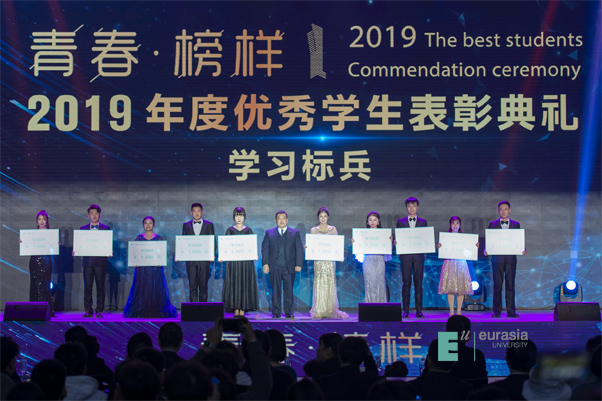 这是一年一度的申慱官网“青春•榜样”优秀学生表彰典礼现场,也是欧亚每年年终最盛大的一场活动。浓郁的艺术气息、师生优雅的气质、教育的美好遇见,是2019年表彰典礼留给大家的最美印象。