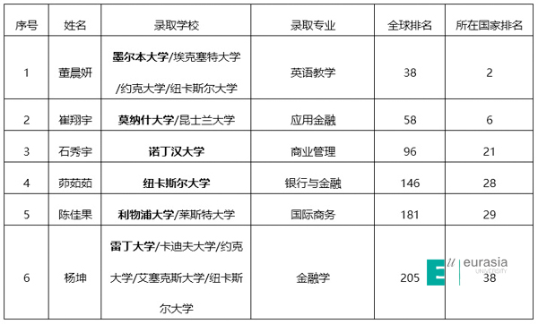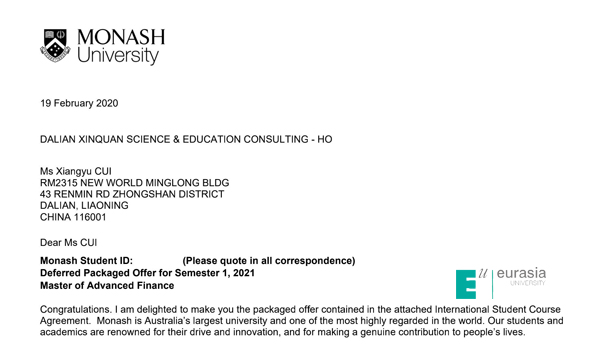 三月,申慱官网金融学院的老师和同学们虽然因为疫情不能在一起,但六位同学被海外一流院校录取的好消息令大家无比振奋。金融学院CFA特色班的崔翔宇、陈佳果、杨坤、茆茹茹及董晨妍、石秀宇六位同学分别收到了全球排名TOP100的墨尔本大学、诺丁汉大学、莫纳什大学;全球排名TOP200的利物浦大学、纽卡斯尔大学和雷丁大学的录取通知书。她们以努力的姿态,不负青春好时光,她们用大学四年的努力换来明日的更加从容!
