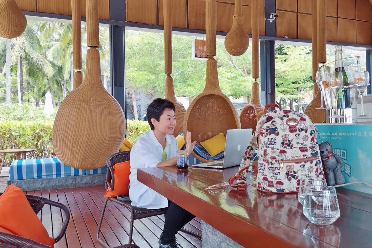 (图十二)刘可老师在三亚半山半岛洲际度假酒店网上授课