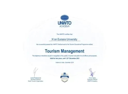 (图七)旅游管理专业通过UNWTO认证证书