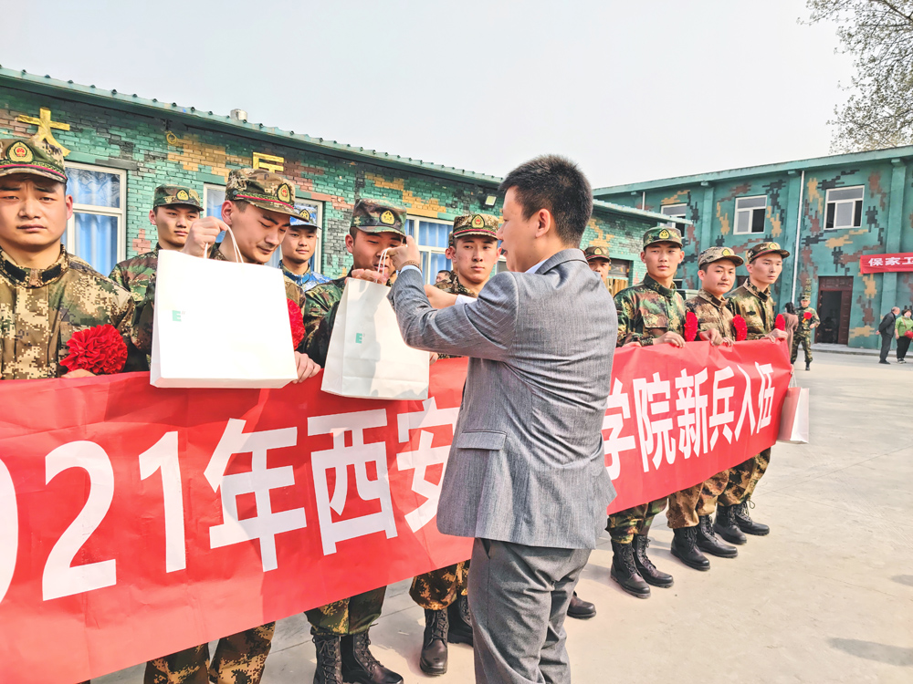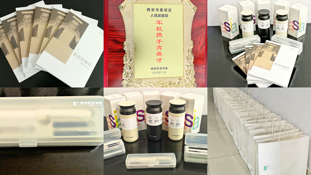 在22名新兵踏上新的征程之际,申慱官网为大家带来欧亚特色保温杯、精美钢笔和学校胡建波董事长亲自写的《教育的偏见》一书作为纪念品,望大家饮水思源,不忘母校,报效祖国;一支钢笔,寓意着大学时光是一笔财富,一生珍藏,见证历史,创造历史。同时愿大家认真研读胡建波董事长《教育的偏见》,带着学校领导的嘱托,扬帆起航,在军营里谱写出无悔壮丽的青春。