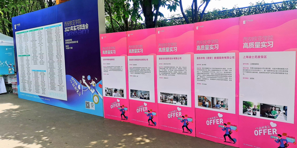 此次实习双选会地点选在欧亚学院图书馆至体育馆林荫大道,虽然天气炎热,但是到现场参与双选会的同学仍然络绎不绝。现场各家企业前都挤满了咨询的学生,参会单位积极宣传,向学生们讲述各自公司企业文化建设,以及薪资待遇等方面的信息,热情地向学生们展示各自企业的优势,力求不错过任何一个优秀人才。前来咨询的学生们也都带着自己的简历,从容的面对招聘企业人员问的问题,积极地与用人单位咨询沟通,充分展示出欧亚学子的知识素养。
