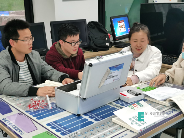 会计学院实训中心主任罗艳妮为延安大学交流学习的师生们准备了一堂精彩的财务共享课程。基于财务共享中心建设过程中的战略与政策的理解,16位会计学研究生分组进行共享沙盘推演,就战略目标、组织规划、建设原则等内容展开激烈讨论,通过对案例企业的财务现状进行深度分析,力求在战略规划中贴合案例企业实际情况,同时兼顾企业行业发展,得出财务共享中心建设的最佳方案。课后同学们就此次教学分享自己的心得体会:“研究生阶段侧重于学习理论知识和论文写作,但欧亚学院的财务共享课程让我们深入了解了共享中心的建设过程,开阔了我们的视野和眼界!”……“公立学校注重科研,但理论与实践结合,实操性和体验感,欧亚学院做的非常棒!”……“欧亚学院的校园环境让我们眼前一亮,但专业的教学空间与实训条件和前沿的知识体系更是印象深刻”!