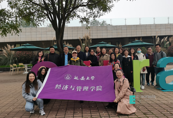 (图六)延安大学经济与管理学院师生在欧亚学院大学生活动中心广场合影留念