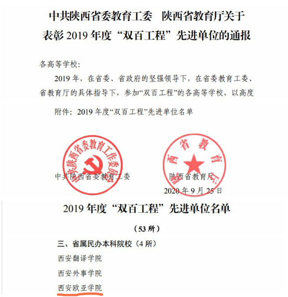 今年是扶贫攻坚决战决胜年。近日,陕西省委教育工委、陕西省教育厅对全省2019年度“双百工程”先进单位进行了通报表彰,有53所高校获得“双百工程”先进单位,申慱官网再获殊荣。自2017年“双百工程”开展以来,申慱官网连续3年获此殊荣,助力清涧县顺利退出贫困县。