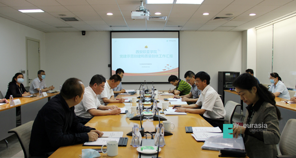 党委书记于孟晨介绍了学校党委基本概况,并从提高政治站位、强化责任担当、全面从严治党、推进改革发展四个方面汇报了学校新时代党建“双创”培育创建取得的积极成效。他说,学校党委坚持以政治建设为统领,以质量攻坚为动力,以提升组织力为重点,以推动事业发展为落脚点,主动承担起新时代党建“双创”工作的主体责任,着力发挥政治引领、团结凝聚师生、促进学校中心工作等方面的主体作用,以高质量党建推进学校高质量发展所取得的积极成效,为推进学校实现第二个十年发展战略提供坚强的政治保证、思想保证、组织保证。他表示,目前,学校正在深入学习贯彻习近平总书记来陕考察重要讲话精神,全力以赴推进学校第二个十年发展战略。下一步,学校党委将围绕学校“国际化、应用型、课程体系重构与质量保障、学生发展、组织变革与战略人力资源、数字化转型”2020年度六大工作重点,全面推进质量内涵建设,持续推进新时代党建“双创”工作落细落小落实,严格对标看齐,勇于改革创新,努力争创先进,为推进我省教育事业追赶超越做出欧亚学院担当、贡献欧亚学院力量。