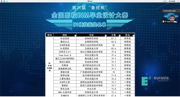 师生面对18支实力强进的队伍,整理好着装,本着虚心的态度学习和交流,沉着冷静应对答辩问题,最终脱颖而出,一举斩获全国特等奖1项、全国二等奖1项:B1--BIM应用赛项阶段(以下简称B1)获得特等奖、A1--BIM建模赛项阶段(以下简称A1)获得二等奖。