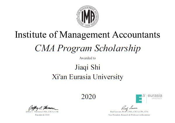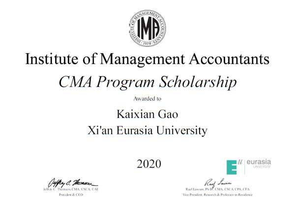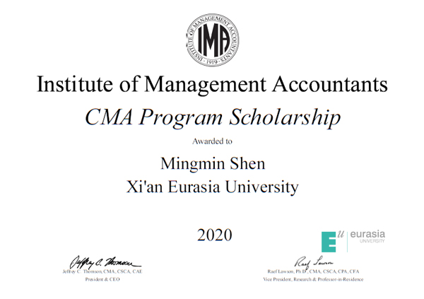 日前,由美国管理会计师协会(IMA)设立的CMA奖学金2020年度获奖名单揭晓,申慱官网会计学院2017级财务管理专业高开先、石佳祺、沈铭敏荣获本年度该项目奖学金,将获得免费 CMA 学员注册和 CMA 考试的机会(等值约¥6000元)。这标志申慱官网的管理会计国际化人才培养工作和教学质量获得了IMA的高度认可。