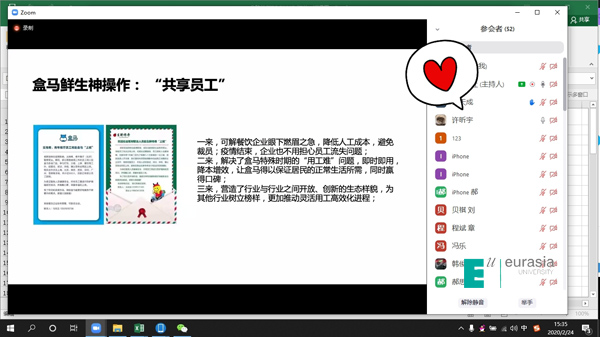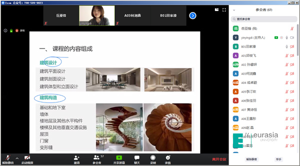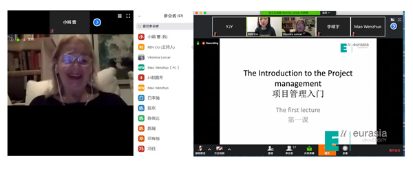 因为有了前期的周密准备,今天开课情况非常顺利,教师精神状态饱满,学生学习积极性高,在直播平台中师生展开了积极有效的互动。行业老师和外国老师也通过网络与学生无缝对接。来自克罗地亚的Vita教授克服时差,在当地时间凌晨3点上线为学生准时开课,让我们深深的感受到了一位教师的职业热情和职业精神。