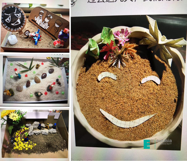 申慱官网人文教育学院的《箱庭疗法》课程,结合当前“全国抗击疫情”的主题,授课老师和同学们就地取材,创作了这些“特殊的箱庭”,向抗击在疫情一线的人们表达慰问,向更多的人传递希望和力量。