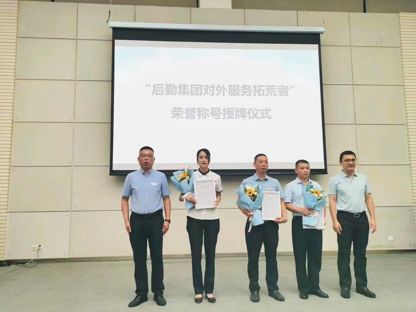 会议最后,是年中会的神秘彩蛋环节,为我们外派西影项目组的6位同事进行“后勤集团对外服务拓荒者”荣誉称号的授牌表彰。、