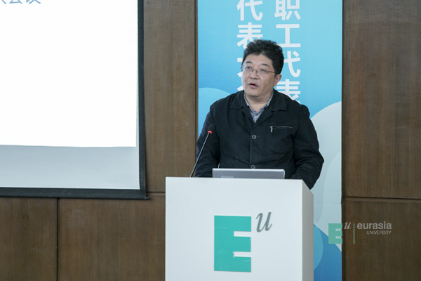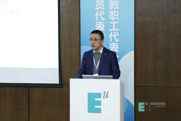 工会副主席晏建忠作《sunbet申慱官网第三届一次工会工作报告》以及《第三届一次教代会提案处理情况报告》和《第三届二次教代会提案征集情况报告》。