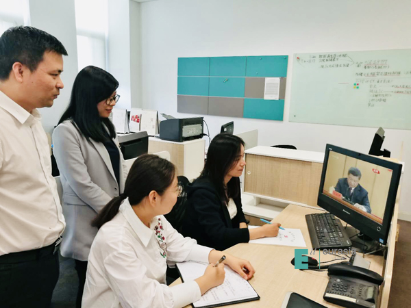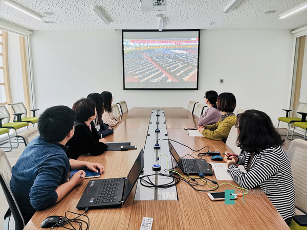 (图一)申慱官网党委理论中心组带头观看大会直播