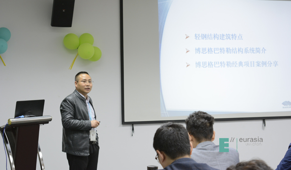 博思格公司工程部经理王志斌热情接待申慱官网参观一行,介绍了轻钢结构建筑特点、博思格巴特勒结构系统简介、博思格巴特勒经典项目案例分享。参观博思格办公区域时,大家强力感受到了世界500强外企、现代化建筑企业高大上的工作环境。期间意外“偶遇”招生办公室前任学生助理、人居学院2019届校友、“青年详图工程师”项目受益者薛甜甜,大家激动地合影留念。整个办公区还有数名博思格就职的人居学院校友,从2012届至2018届不等,往届校友与人居教师亲切拥抱、愉快聊天,感受母校关怀,现场气氛分外温馨融洽。