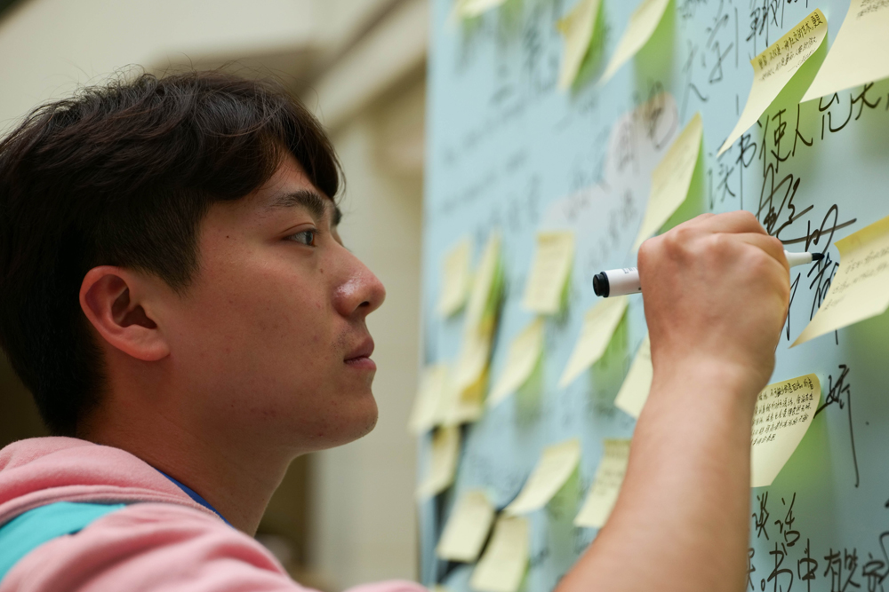 开卷有迹阅读打卡活动,同学们将自己的阅读感悟或者阅读美文进行摘抄,并在现场签名墙上粘贴,同时签上自己的名字并留影。