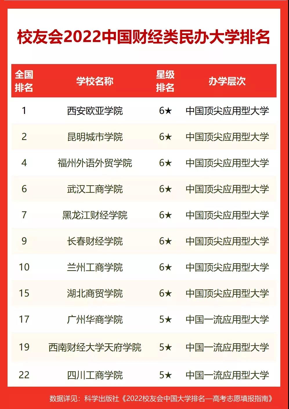 艾瑞深中国校友会网财经类民办大学排名(部分)