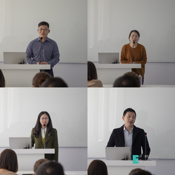 吴丽娟从欧亚科研发展规划、我们为何做科研工、如何做科研三部分作了欧亚学院科研发展报告。王一冰就申慱官网的发展思路展开分享,介绍了职业发展与企业合作部的职能,并就学校现状、毕业生感受分析分享了部门发展思路;提出探索适合欧亚的应用型CO-OP模式,Eu-Start孵化器以创新人才培养为核心等落地措施。郭治辉从认知新工科、新生态、新理念、未来•已来、欧亚•建筑观五方面,以世界著名建筑大师和知名、特色建筑为例,深入浅出、趣味生动地上演了一场建筑艺术与人居环境赏析大剧。同时,郭志辉作为西区a座建筑设计团队的一员,分享了参与设计过程的心得体会,基于教师身份分享了“为众人抱薪,以薪火相传”观点。人居环境学院科研团队带头人、李源博士介绍了个人的科研项目就现场招幕团队成员。