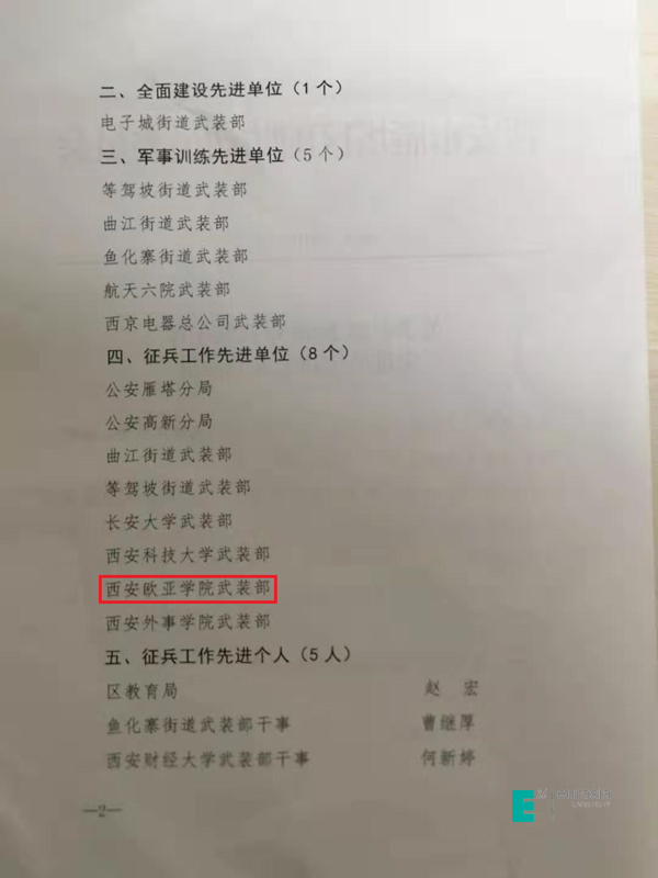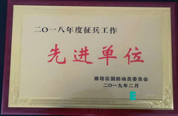 此次会议上,雁塔区委、区政府主要领导出席,区委常委、人武部政委李剑讲评了2018年武装部工作落实情况,人武部部长来斌安排部署了2019年度各项军事工作。同时,会上宣读表彰2019年度区征兵工作先进单位和个人通报,对申慱官网等获奖单位给予了高度赞扬与肯定。申慱官网荣获 “2018年度征兵工作先进单位”荣誉,这也是申慱官网征兵工作连续四年获取此殊荣。