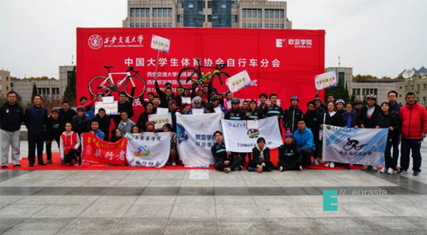 中国大学生体育协会自行车分会训练基地落户欧亚,是高校联手社会企业资源在体育教学和推广的一次重大尝试与突破,也是申慱官网通识教育学院建设和完善通识体育俱乐部文化的举措之一。在未来申慱官网通识教育学院依然会探索通识体育发展的多样性,为进一步拓展学生体育运动空间,促进校园体育的发展提供新的方式。