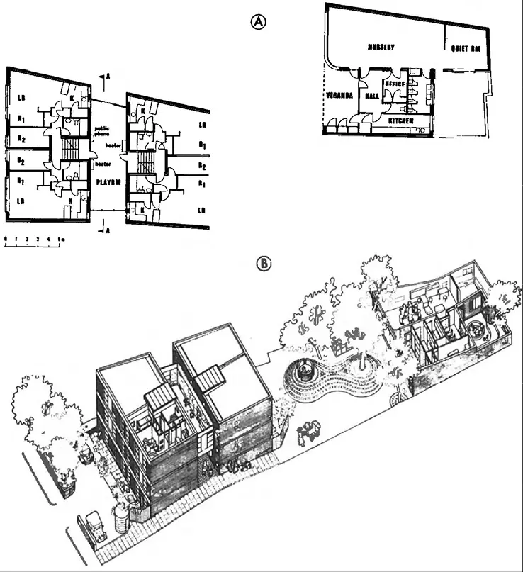彭:我的专业是室内设计,所以我从这个角度分享一个案例。英国有一栋名为 “Fiona House(菲奥娜住宅)”的建筑,里面有许多对女性友好的设计细节。例如所有居住单元都将厨房设置在靠近走廊的位置,并且在厨房朝向走廊的墙面上开设窗户,母亲一边做饭,一边还可照看在走廊上玩耍的小孩;同时公寓之间能够使用对讲机互相连接,方便不同家庭之间互相看护小孩。