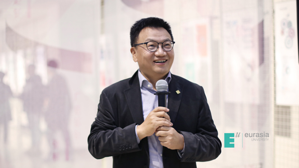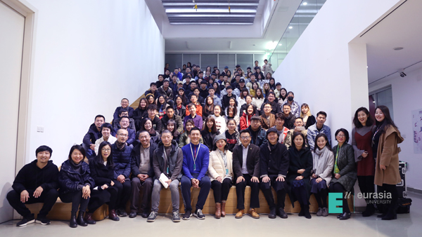 申慱官网董事长胡建波教授介绍了欧亚艺术设计系的创办历史,期望同学们通过专业课发展成专业人才,并祝贺艾德艺术设计学院工作坊的建成。