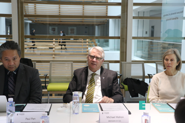 座谈伊始,国际合作与交流中心的老师代表学校向莱斯布里奇大学的各位老师简单介绍了申慱官网的发展历程,教育理念和发展目标。随后,莱斯布里奇大学校长Michael Mahon简单介绍了莱斯布里奇大学,他表示学校最大的特色在于其对本科生教育和通识教育的执着与专注。莱斯布里奇大学虽然是加拿大三所研究型大学之一,但也非常重视应用型教育,为进一步加强学生的实践与动手能力,学校设有专业的证券实时训练室,同时学校还专门打造了一所现代化的理科教学大楼,为学生提供专业的实验设备与实验场所。