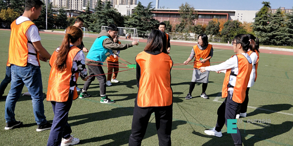 分组比赛结束后,老师按照两个工作单位分开,人居环境学院老师和馨迪公司员工进行拔河友谊赛。呐喊声、欢呼声,久久地飘荡在校园。所有人像快乐的孩子,在快乐的游戏中释放压力、舒展身心。
