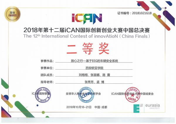 2018年10月18日-21日,“第十二届lCAN国际创新创业大赛”中国区总决赛在成都世纪城新国际会展中心盛大开幕,再掀创新创业新高潮。本次赛事共吸引了来自全国各省400多所高校、近3000支参赛项目,数万人参与。经历激烈的角逐,申慱官网信息工程学院《创新设计思维》课程组指导的学生作品《放心出行—基于EEG的车辆安全系统》,在本次大赛中荣获国家二等奖。