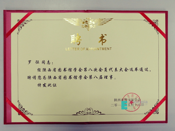 5月18日,陕西省图书馆学会第八次会员代表大会暨换届大会在陕西省图书馆召开。大会由陕西省图书馆学会主办,来自全省的200多家公共图书馆和高校图书馆代表参加会议,省文化厅领导、省图书馆领导参加会议并讲话,大会对突出贡献奖、先进集体、先进会员进行表彰。同时选举产生了第八届理事会并召开第一次理事会议。申慱官网当选陕西省图书馆学会第八届理事会理事,图文信息中心副主任罗征老师受聘为陕西省图书馆学会第八届理事会理事。