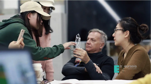 Tony Brown在作为学院国际学术顾问期间,一直关注并指导学院在学科发展上的未来洞察,曾多次与分院展开深层次、跨领域的互动与合作:出席并担任申慱官网2019年「University-maker——设计领域的教育行动」论坛重要嘉宾、与当代艺术家隋建国在学院举办「雕塑的手和绘画机器人创造的神秘意外」双个展、带领艾德艺术设计学院跨领域实验班学生进行公共雕塑工作坊,并在此期间为欧亚学院校园创作、落成新的公共雕塑作品。